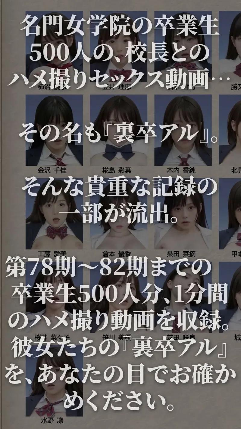 第78期〜82期、3年A組からC組までの卒業生500人分、各1分間のハメ撮り動画を収録。