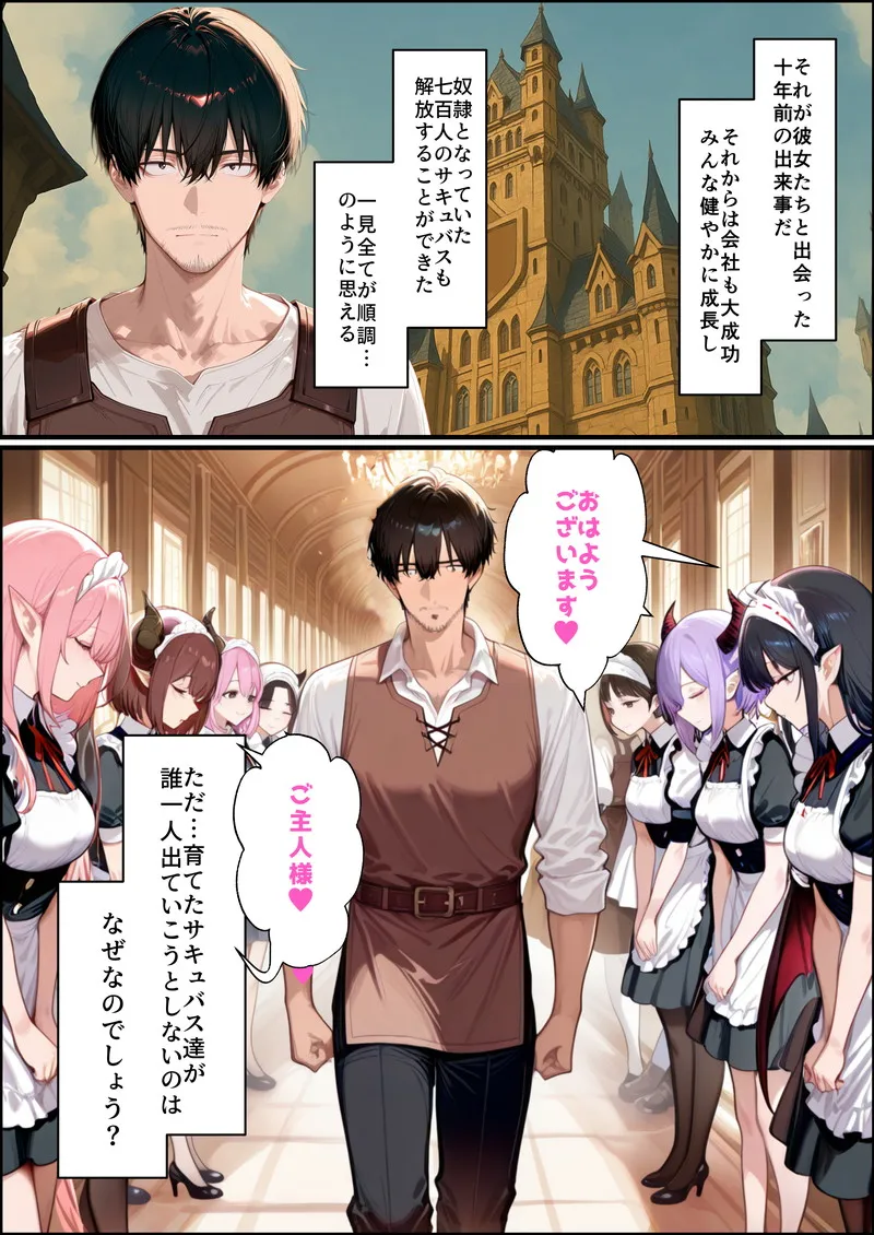 奴隷市で出会った三人のサキュバスを救い出した彼は、責任感と優しさから彼女たちを守り育てる決意をする。