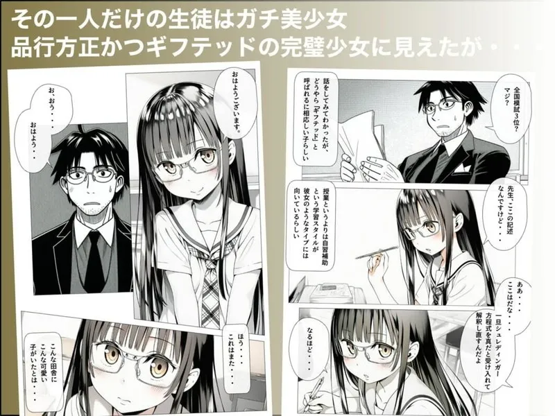 教員の俺はある田舎の村に赴任することになった。生徒は一人だけ。だがその一人だけの美少女は、どうやら男の視線に慣れていないらしく、防御力0。ある日混浴で彼女と出会してしまい、理性は崩壊の危機を迎える・・・全101P漫画形式。