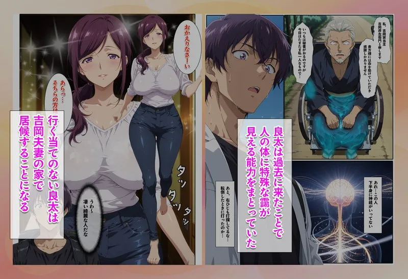「『靄』に導かれるまま、不能となった夫の身代わりに、熟れた人妻の最奥を未来の精子で汚し抜く非道な依頼! 拒絶不能な運命の名の下に、清楚な雅美が女としての本能を剥き出しにし、良太の若きエネルギーを貪り尽くす! 時代も、道徳も、夫婦の絆も蹂躙し、ただ純粋な『繁殖』のために肉を重ね合う二人の、逃げ場なき中出しパラドックス! 日本家屋の静寂を、人妻の狂おしい喘ぎ声が白濁した汁と共に染め上げる!」