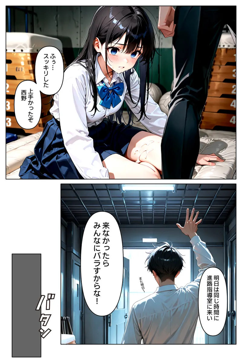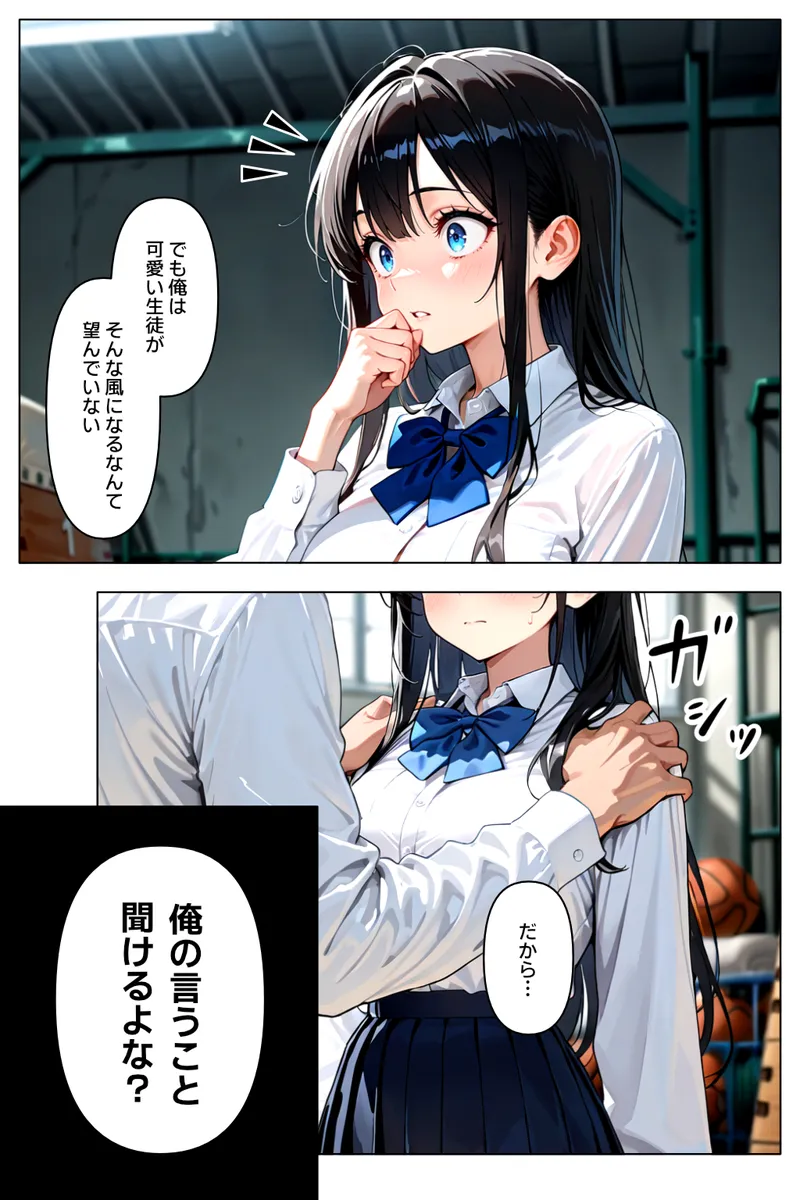 「可愛い生徒がそんな目に合うのは見たくない」という、吐き気を催すほどの偽善の裏で、少女の純潔を強制的に略奪する背徳の取引! 秘密を握られた弱みから、抗う術もなく黒川の肉棒に屈服し、一歩ずつ「言いなりの性具」へと作り替えられていく戦慄の陥落プロセス。 学校という聖域で、教師が教え子を快楽の鎖で縛り上げ、その尊厳を完膚なきまでに白濁液で塗り潰していく、卑劣極まる調教記録。
