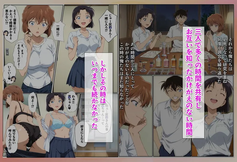 🧪 「『名探偵』の絆を切り裂く、理科室から始まった背徳の肉欲実験! 天才科学少女・灰〇が、江〇川の強引な探究心に肢体を開発され、静止不能な快楽の渦へと叩き落とされる衝撃の三角関係!」