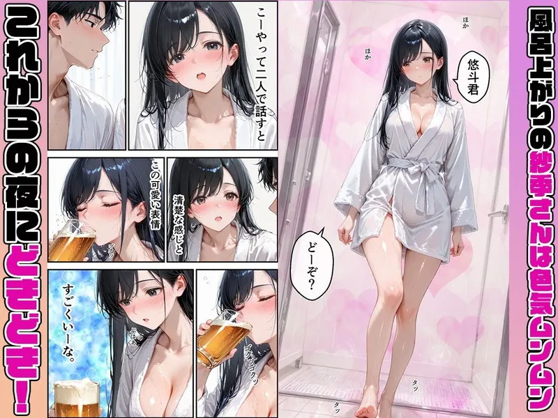 風呂上がりの色香に当てられ、目の前で繰り広げられる上司と紗季の濃厚な絡みに、悠斗の脳髄は嫉妬と興奮で破裂寸前! 「真面目で清楚」という皮を脱ぎ捨てた紗季が、二人の男の種を同時に欲し、欲望の赴くままに3Pプレイへと身を投じる衝撃の性交パフォーマンス!