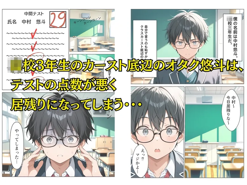 「テストの赤点」という汚名を、理想のヒロイン像を剥ぎ取る「童貞中出しセックス」で完膚なきまでに粉砕! 格差社会の頂点を一滴残らず白濁の愛液で塗り潰し、誘われるがまま連れ込まれた秘事でリードされ続ける、背徳の陥落儀式!