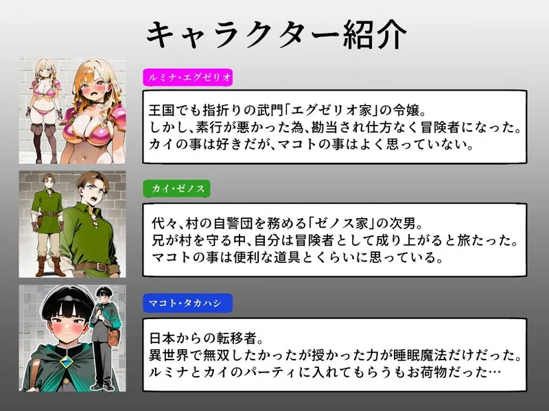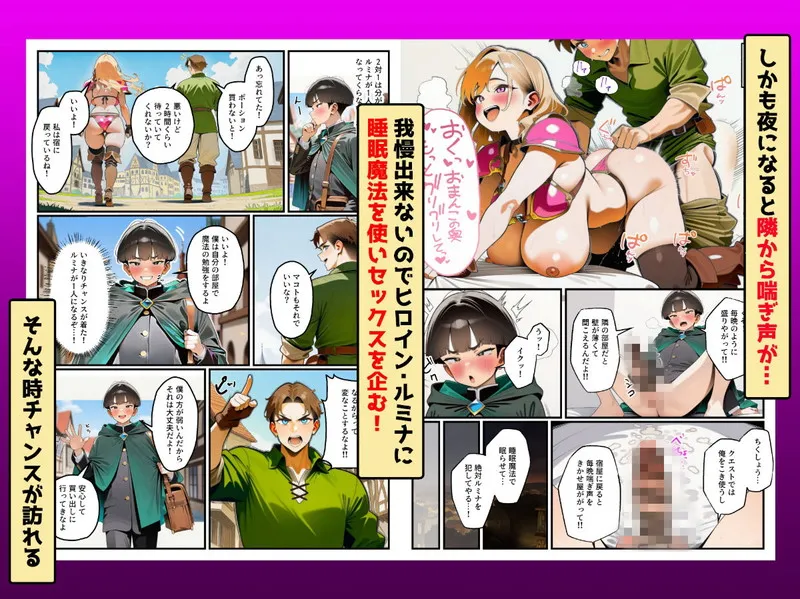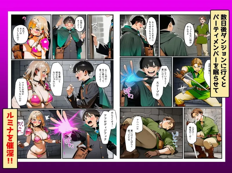 ⚔️ 異世界転生、お荷物からの下克上! 睡眠魔法しか使えないと蔑まれ、雑用を強いられてきたマコトが、パーティの「ビキニアーマー生意気ギャル」ルミナを魔法の毒牙にかける、無慈悲な寝取りドキュメント! 隣の部屋から聞こえるカイとの交尾の喘ぎ声への怒りが、理性をドロドロに溶かす禁断の引き金となる!