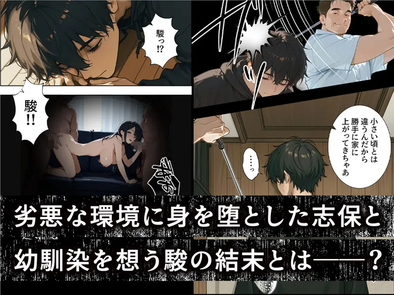 秩序が消失した隣家で、かつての清純な面影を完膚なきまでに破壊し、本能を剥き出しにしたドロドロの肉欲へと解体・再構築される、後戻り不能なわからせの全記録。 海外での3年間に募らせた駿の想いを嘲笑うかのように、実の親による無慈悲な蹂躙と他人に売られる肉体、身も心も一蓮托生に絶頂の深淵へと叩き落とされる、あまりにもエグい陥落の風景!