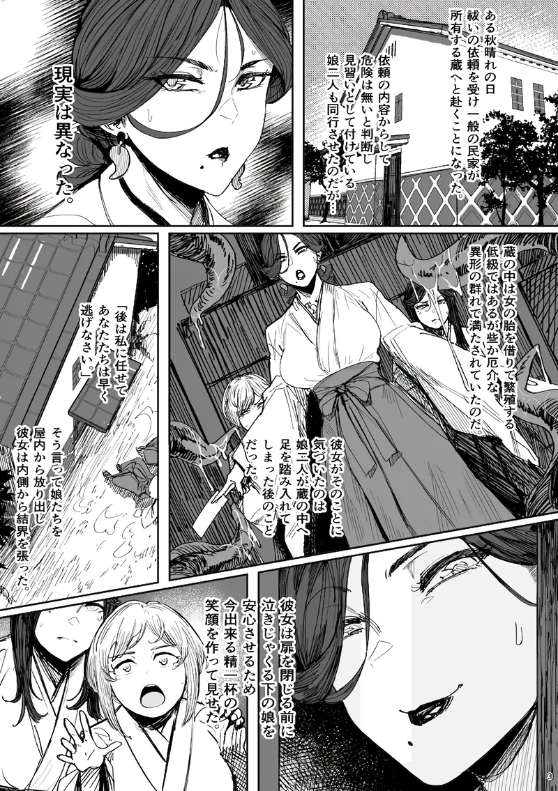 女の胎を借りて繁殖する異形が巣食う蔵に単身