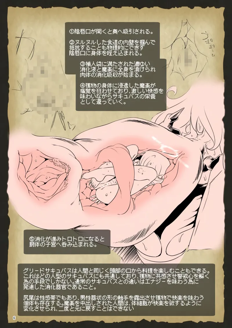 授乳で回復させられた獲物は、サキュバスの餌として体細胞を美味しく変化させられていく…。3巻〜の淫魔と同一。