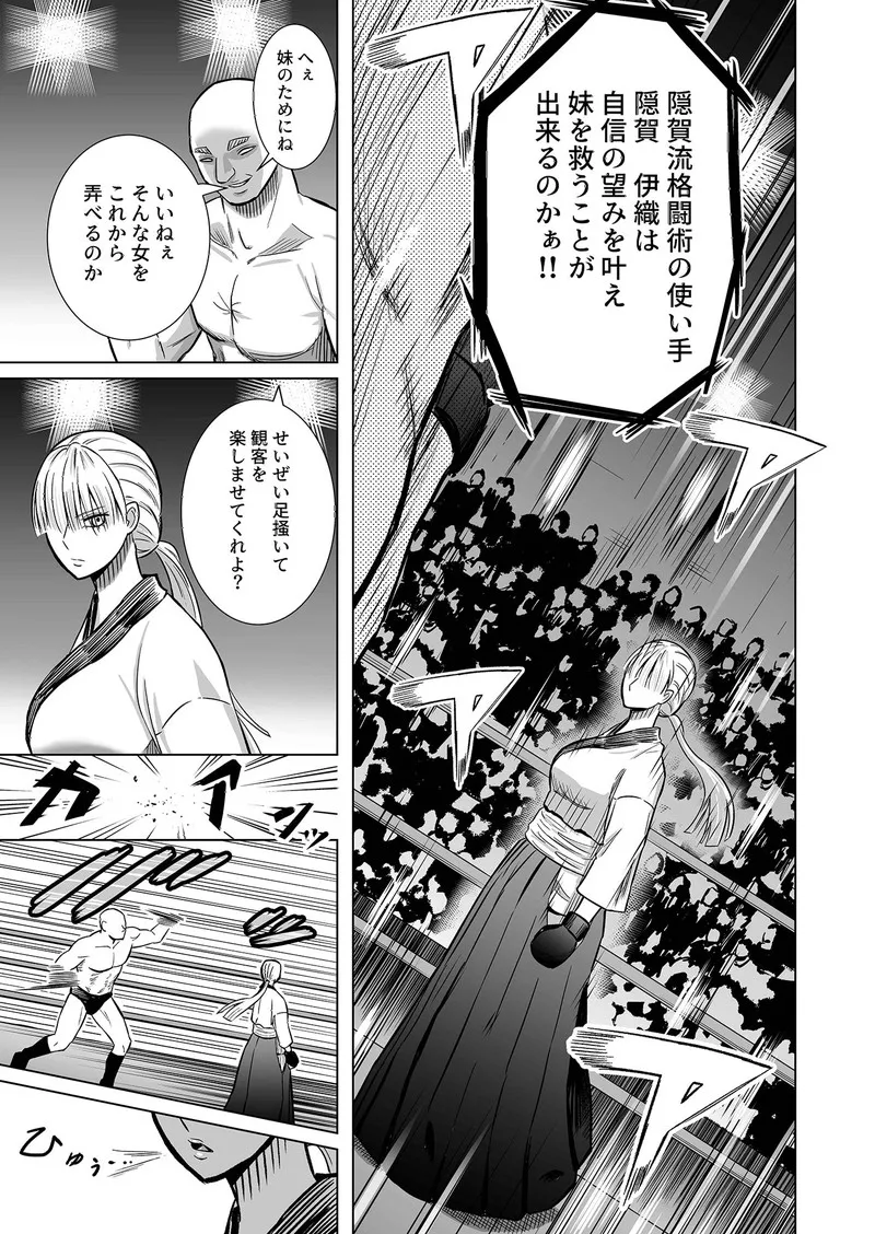 金髪女格闘家の隠賀伊織ちゃんが地下格闘大会に出て、リング上でエロい事されてしまう!頑張れ伊織ちゃん!